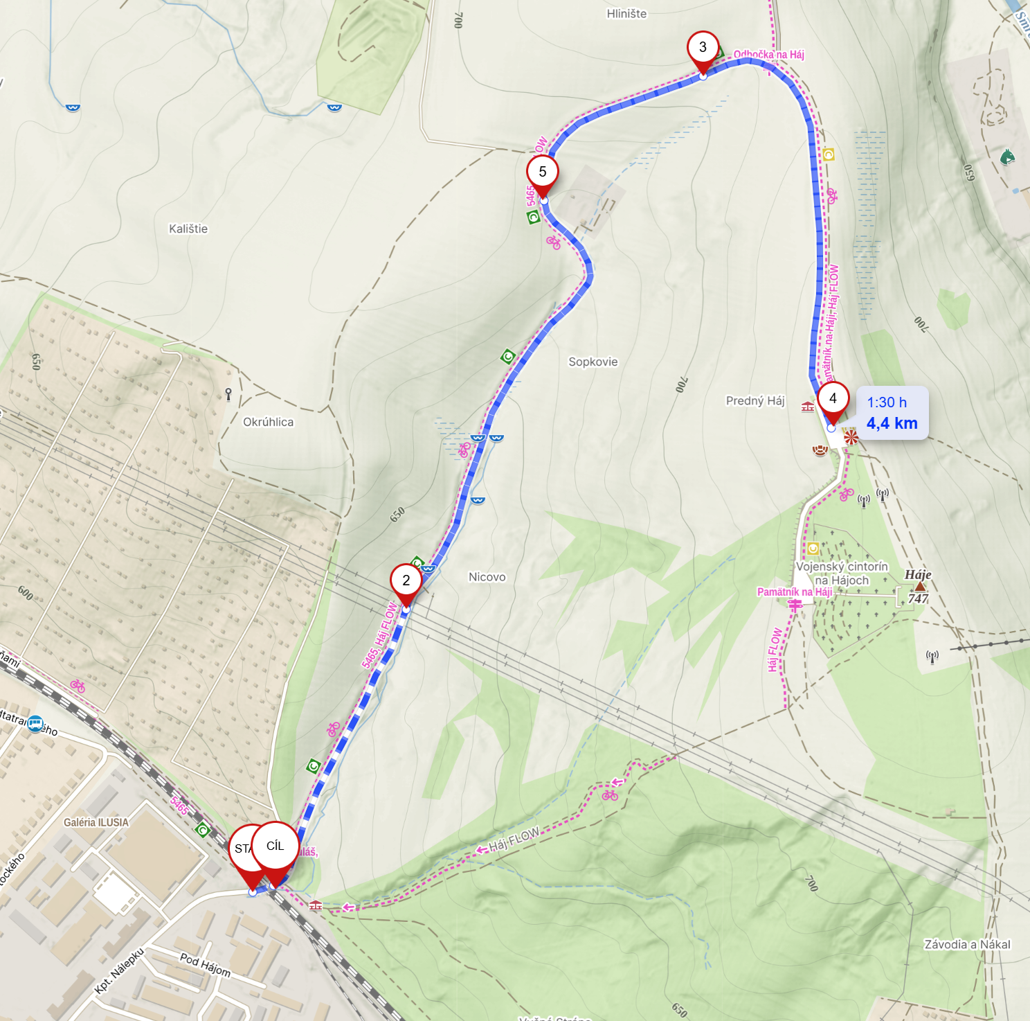 - Start: od parkoviště Stop Shop v Liptovském Mikuláši
