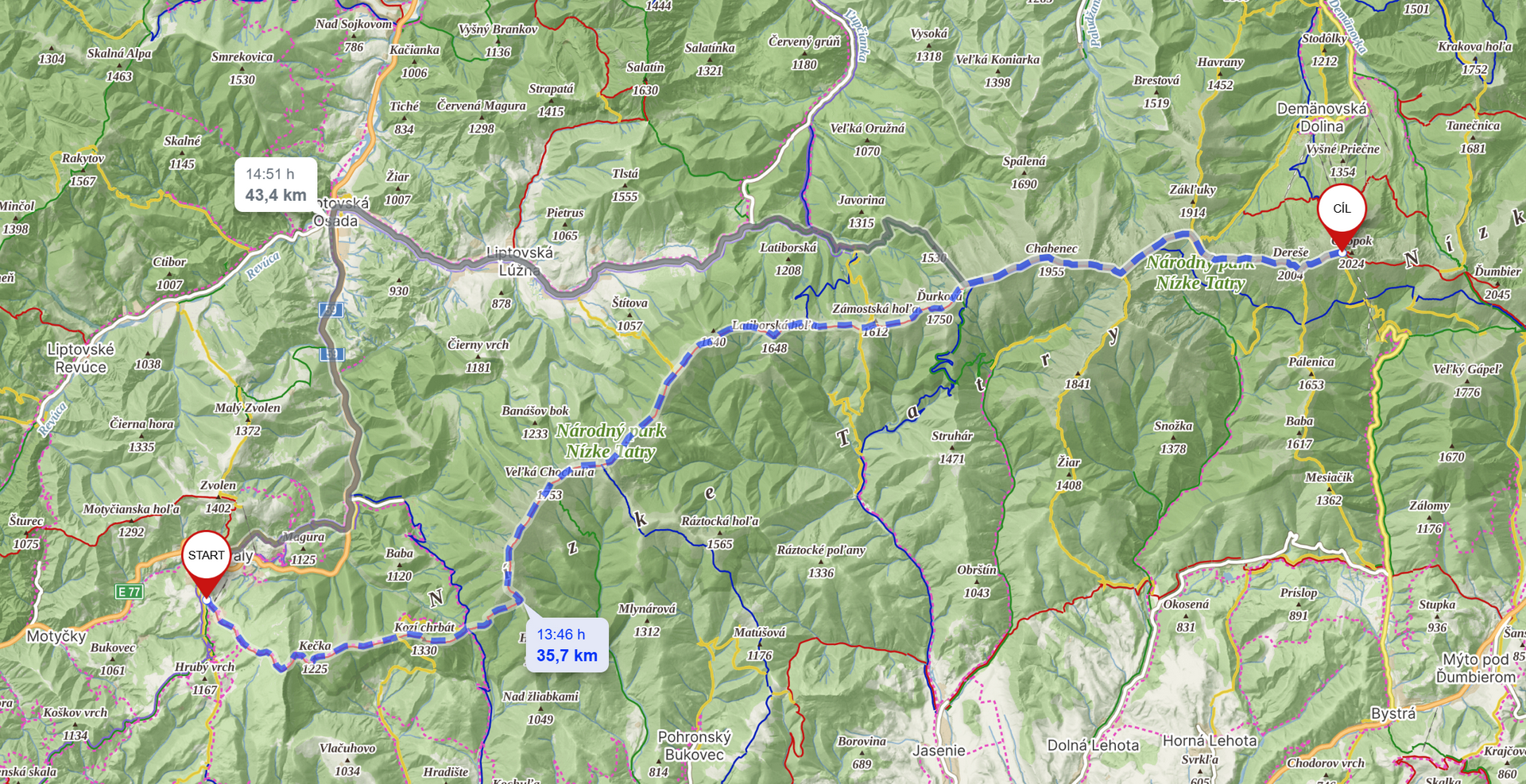 Co se týká převýšení je logické že jde o velké stoupání jelikož se začíná v 1 037 metrech nad mořem a končí se u vrcholu Chopok, který má 2024 metrů nad mořem. Toto je nejméně frekventovaná část Nízkých Tater a proto pokud se tudy vydáte je zapotřebí dávat pozor.