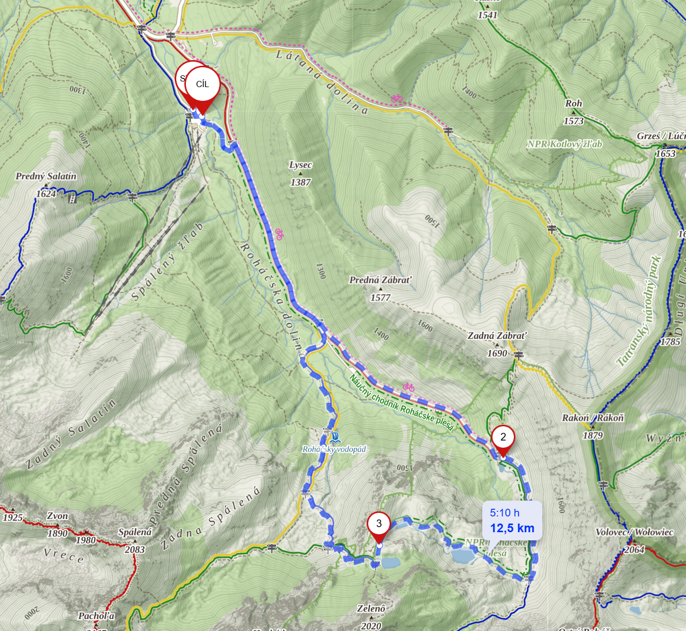 Od Chaty je terén náročnější a stezka podél 3 krásných ples vede po hřebenu Západních Tater. Sestup je lesní cestou kolem Roháčského vodopádu čímž se završí krásny výlet.