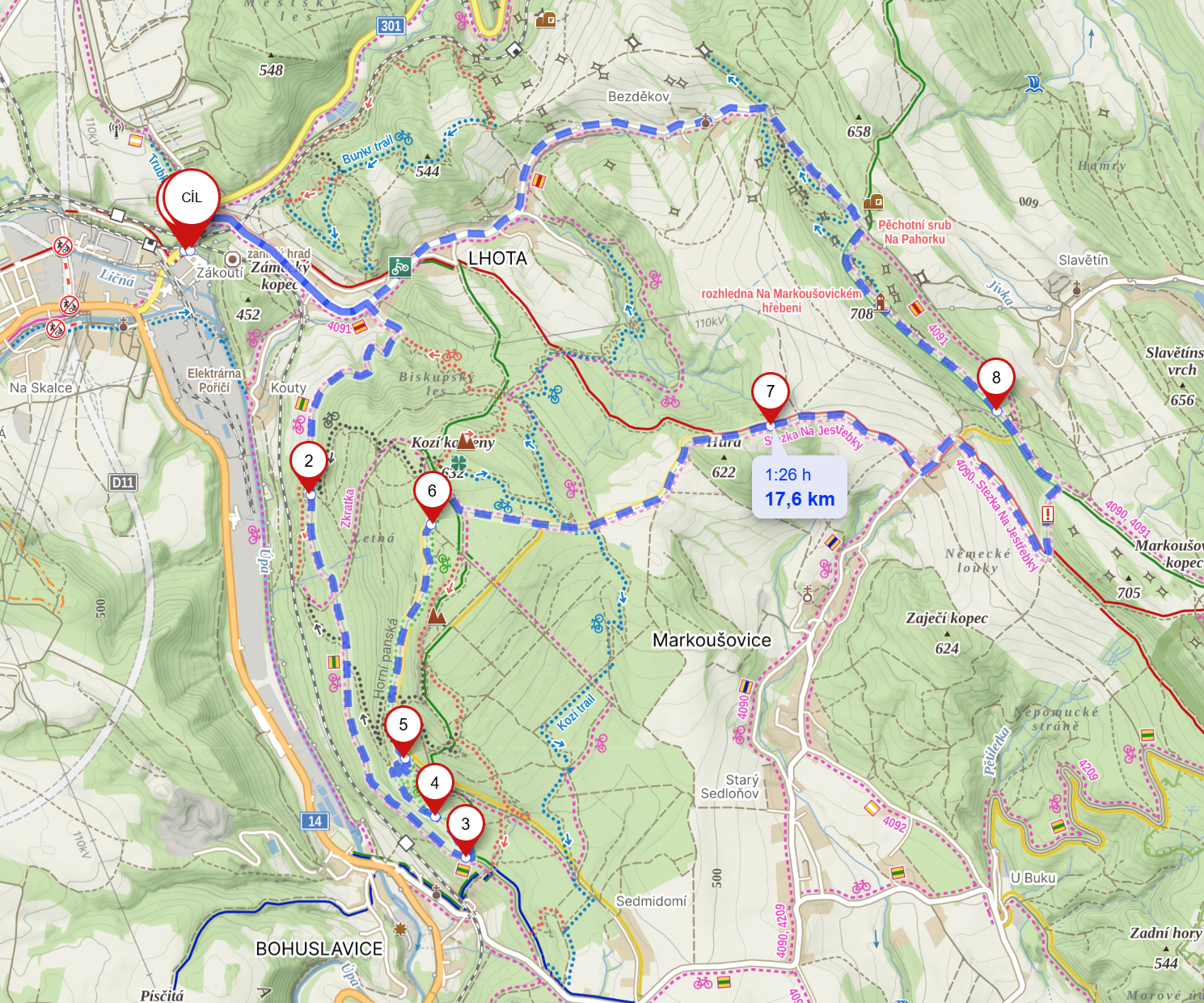 Následně už je to ale opět pohoda a jede lesem, kde můžete počkat nespočet opevněných bunkrů. Skončíte mu krásné rozhledny odkud je nádherný výhled (pokud je pěkné počasí).
